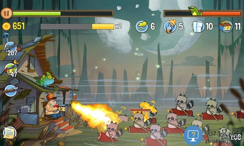 1.可以保卫你的家园!你的沼泽小屋正遭到大批动物的疯狂袭击。你必须保卫你的家园,通过这些让人忍俊不禁的小细节而变得轻松诙谐。