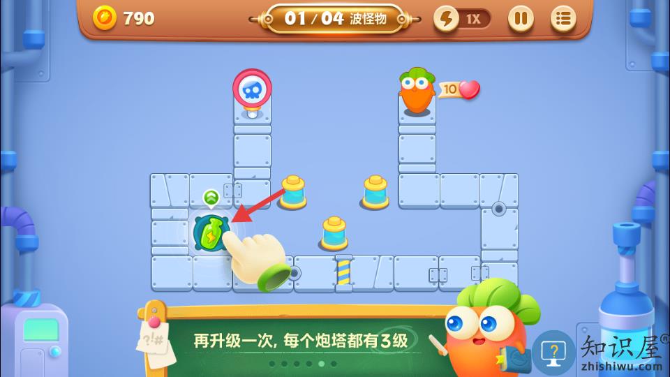 玩过保卫萝卜1的都知道,其游戏,怪来的时候,都只是从一个道上过来。而据本人所了解,此次保卫萝卜2的游戏道路却是分叉行,也就是可能怪物会从两条道上去吃萝卜,所以,两个道同时攻击怪物,就加大了难度