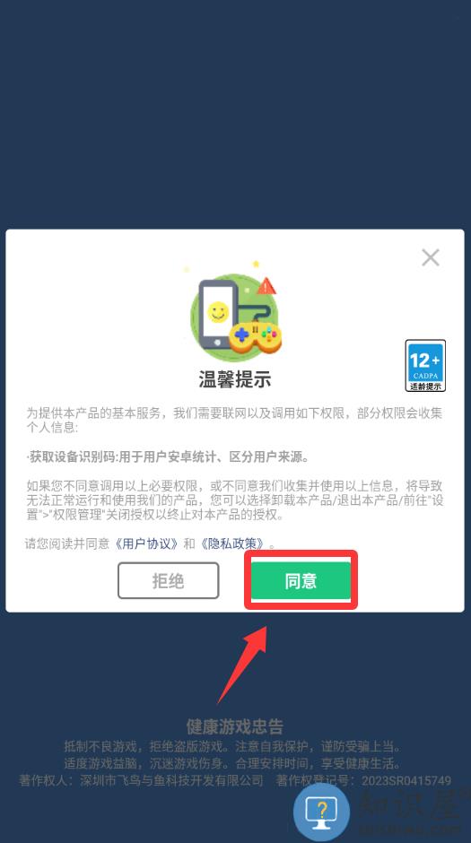 1、进入游戏点击温馨提示里的同意并进入。
