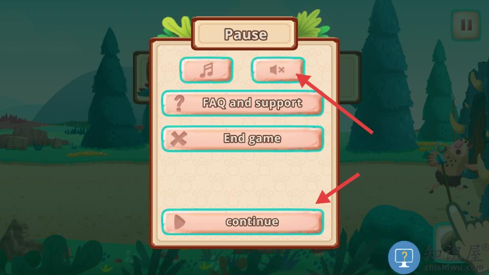 2、点击喇叭按钮,然后点击下方的continue继续游戏。