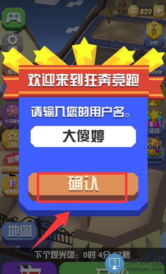 3、进入狂奔竞跑需要角色名字,点击输入然后确认。