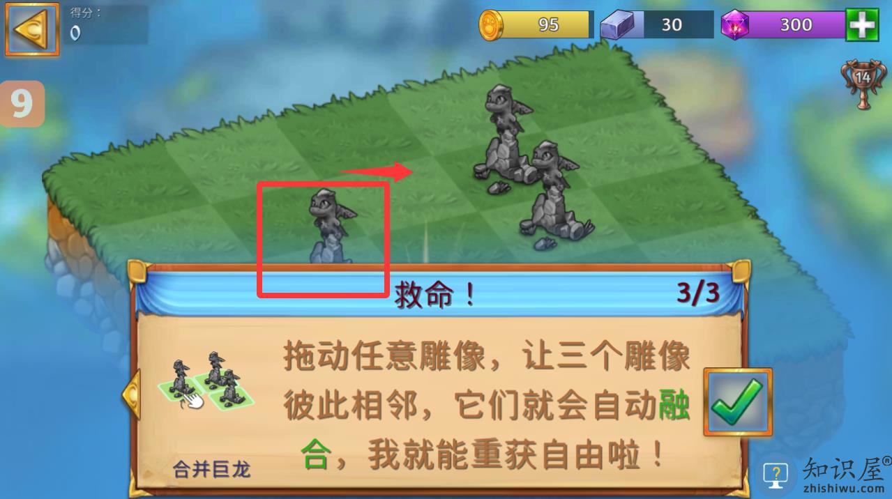 2、点击拖到任意雕像让3个雕像,让它们自动融合。