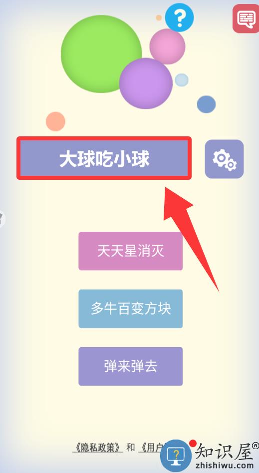 3、进入游戏页面点击大球吃小球并进入游戏。