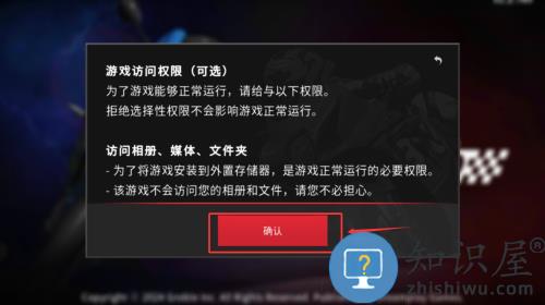 1、点击确认按钮,允许游戏访问外置存储权限。