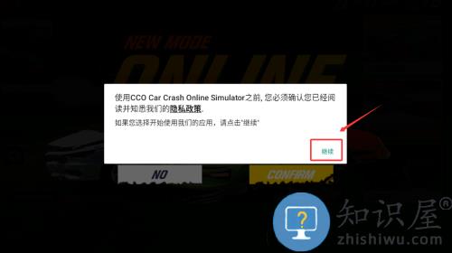 1、点击继续按钮,确认隐私政策开始游戏。