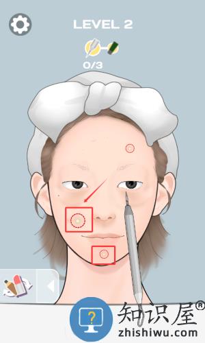 2、使用工具点击红圈,完成零杠三的挤痘任务。