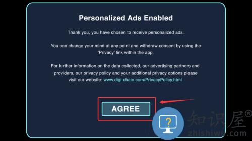 2、点击同意按钮,确认启用个性化广告功能。