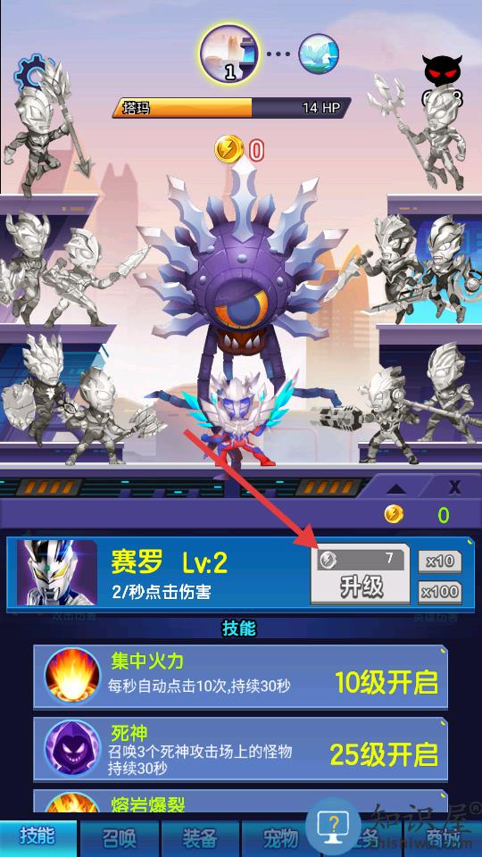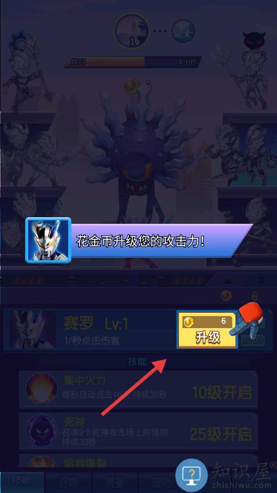 2、使用金币快速提升伤害争取尽快解锁新技能。