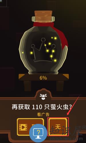 1、点击无按钮,拒绝观看广告获取萤火虫。