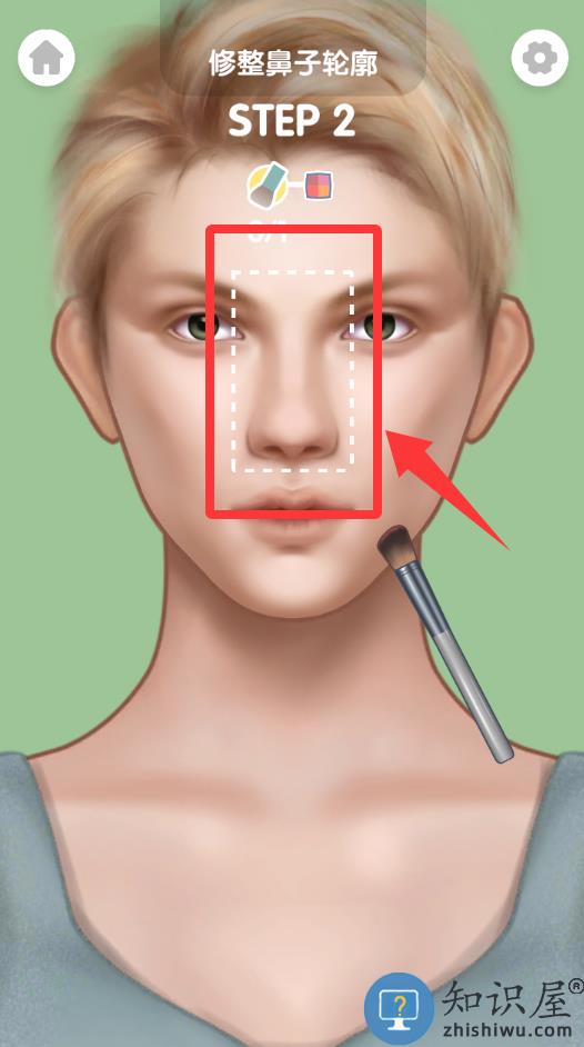 1、进入游戏点击化妆笔把鼻子轮廓描述一下。
