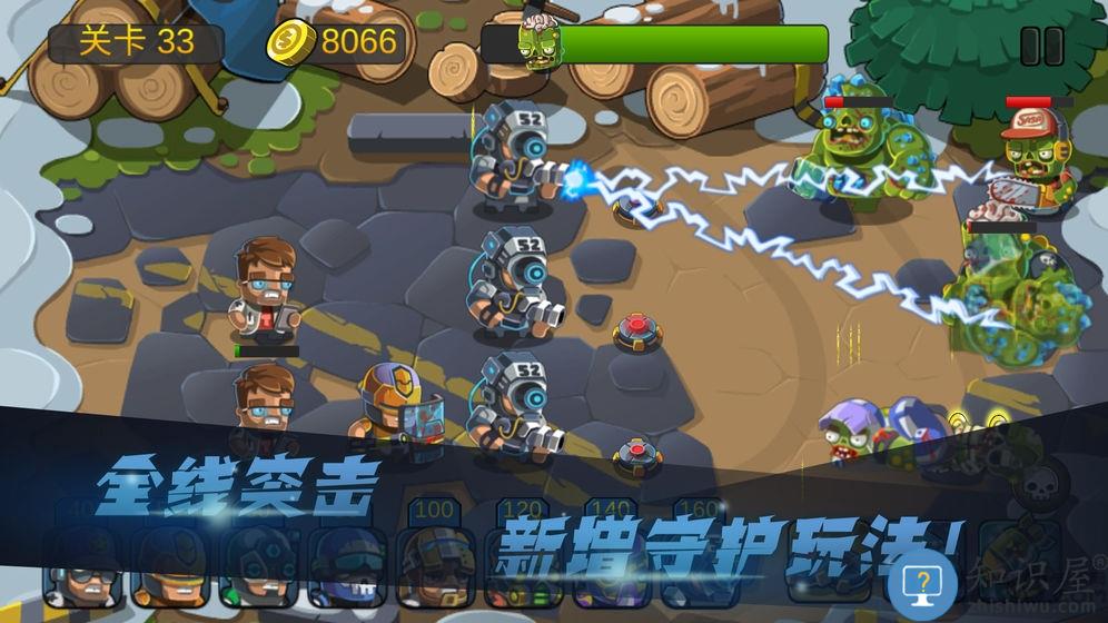 1、部署八类兵种组建防线抵御尸潮侵袭。