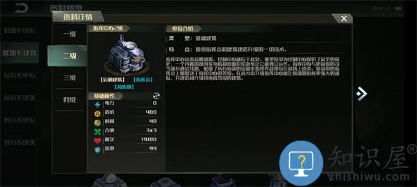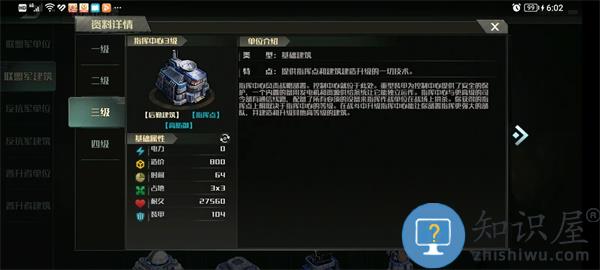1、指挥中心:玩家的基地,在国服里玩家的基地如果被打爆了,那么就那么意味着输了,所以生命和护甲值都挺重要的