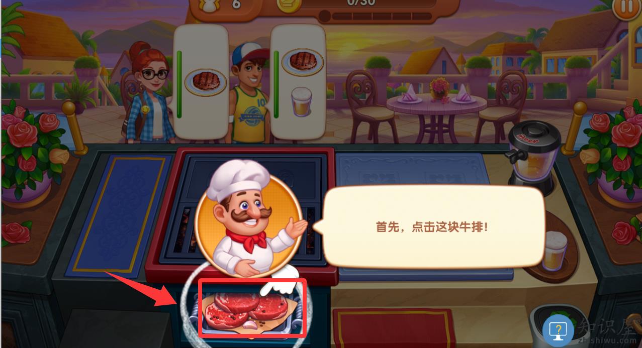 2、进入游戏点击红色框框里的牛排。