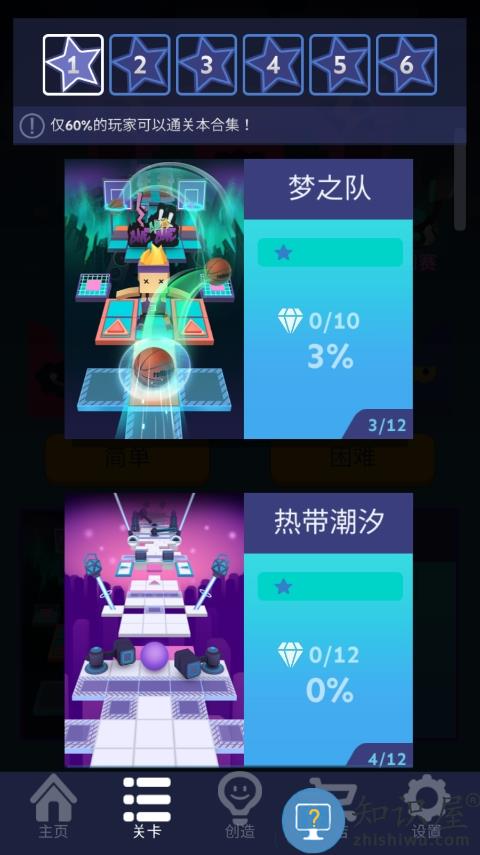 1、首关“云”的场景下,没有太难的拐角和过多的障物,沿着直线载球地面跑,不要碰到两侧凸起的方块,达成满钻通关较易,此图景只需一星就达标。