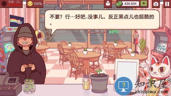 因为我两次遇到他的时间不一样。不知道是不是随机出现的,我上次遇到他都第二章了。他给了我十五块,我没加培根和火腿,他生气走了。