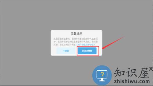 1、点击同意并继续按钮,确认隐私协议开始游戏。