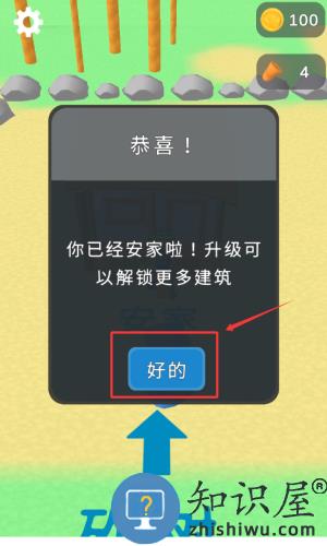 2、点击好的按钮,确认安家成功并查看升级提示。