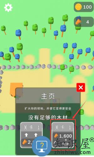 3、选择关卡一,通过免费奖励获取木材扩大领地。