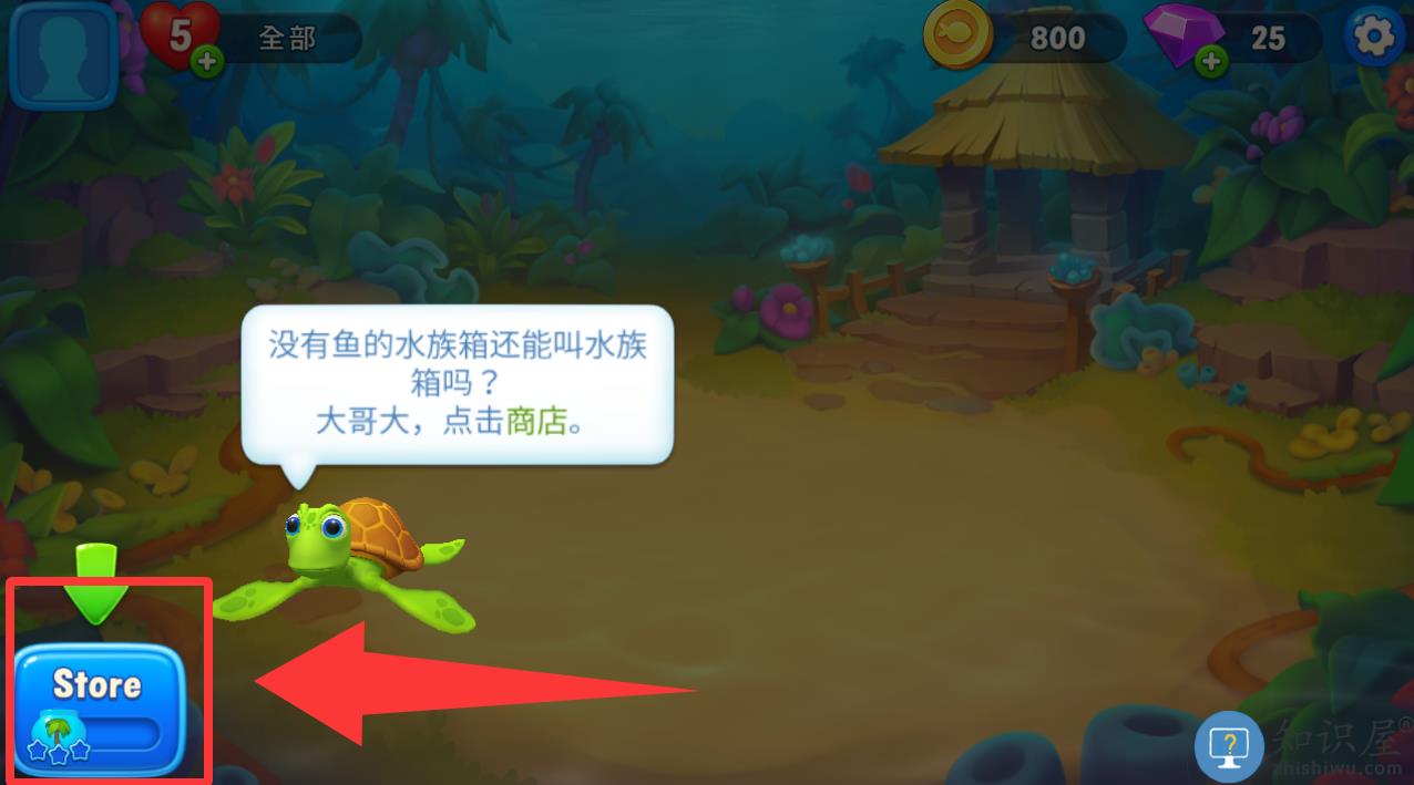 2、按照提示点开右下角的商店页面,可购买各种鱼类