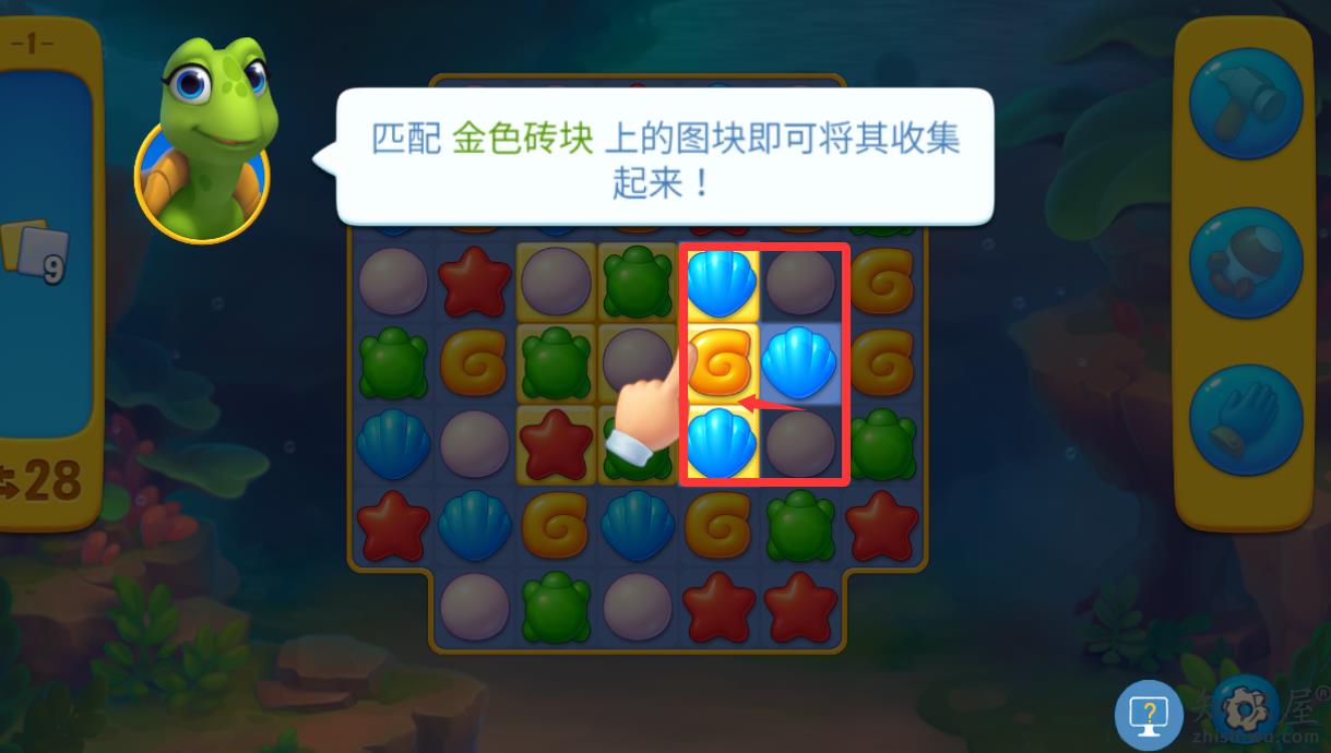 2、进入游戏把同颜色的贝壳移动到一起进行3消。