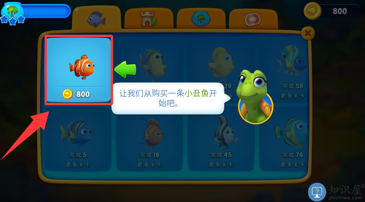 1、进入游戏商店点击购买一条小丑鱼吧。