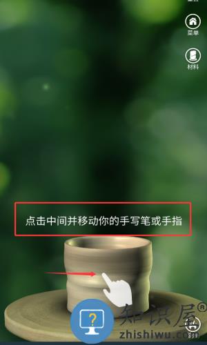 2、点击陶土中间并移动手指,塑形陶器基本轮廓。
