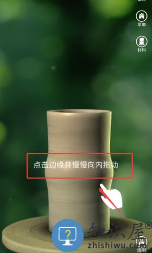 3、点击陶器边缘向内拖动,修整作品最终形状。