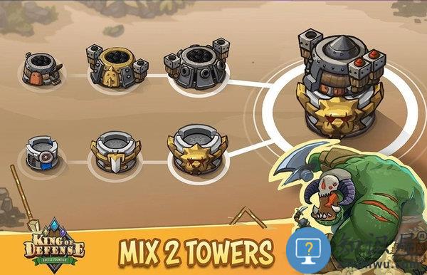 1、通过堆叠组合不同功能的炮塔来构建防御阵型。