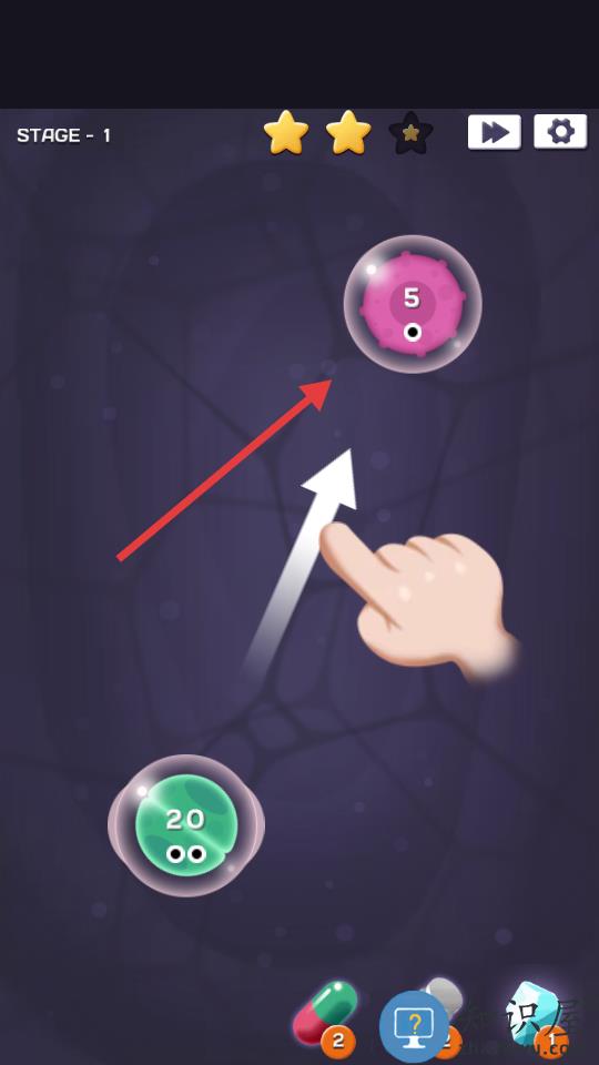 2、绿色细胞和红色细胞之间的战争,而你需要将会是绿色细胞的守护神,帮助它们进行战斗。