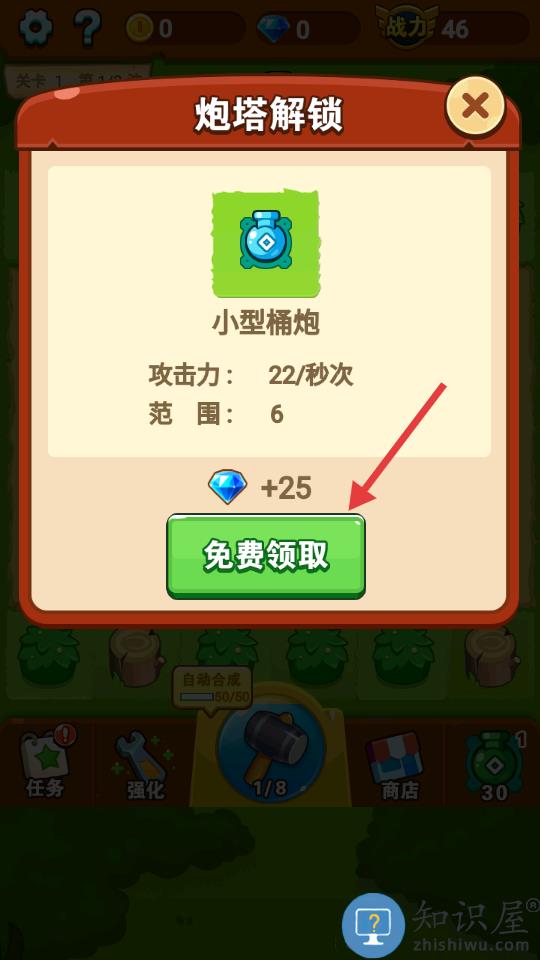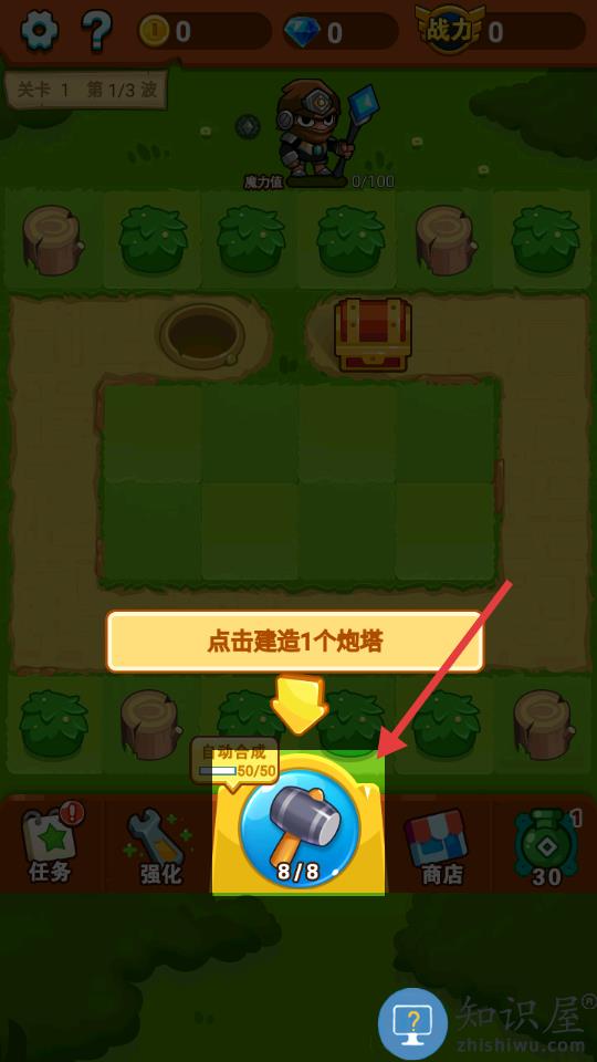 1、通过放置相同炮塔进行合成升级提升威力。