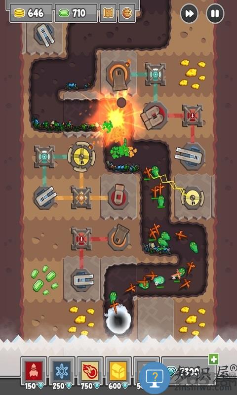 3.涵盖了很多关卡内容等着你去挑战,升级树可以帮助你升级你的防御系统,让你拥有更好的防御能力,进一步挑战宝物.