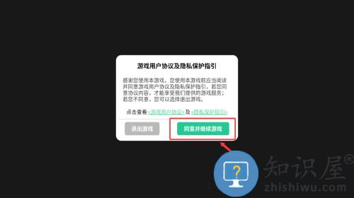 1、点击同意并继续游戏按钮,确认用户协议开始游戏。
