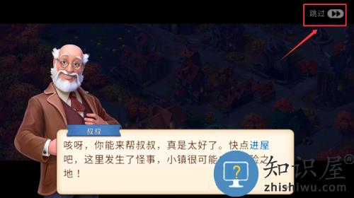 2、点击跳过按钮,快速略过叔叔的对话剧情。
