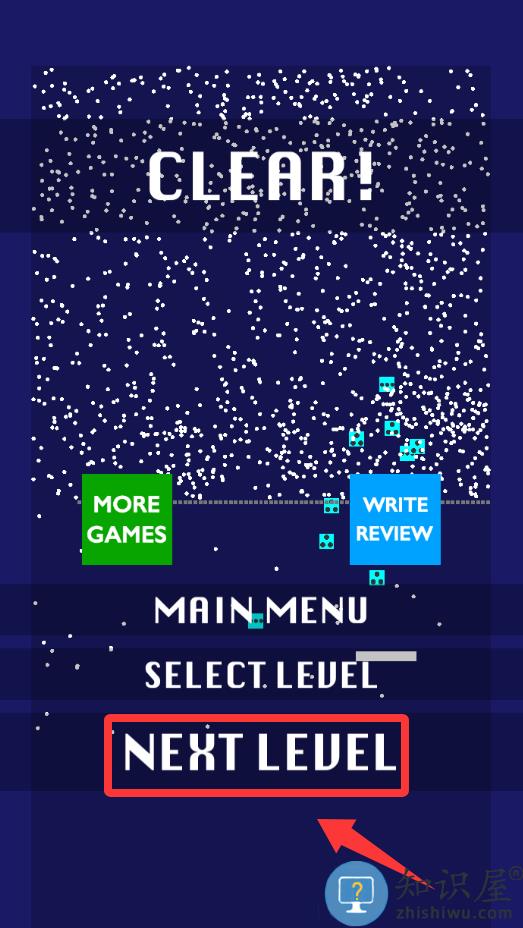 3、恭喜你通关了,点红色框框里的下一关继续。
