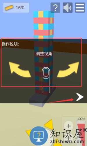 2、双指反向滑动屏幕,调整观察积木塔的视角。