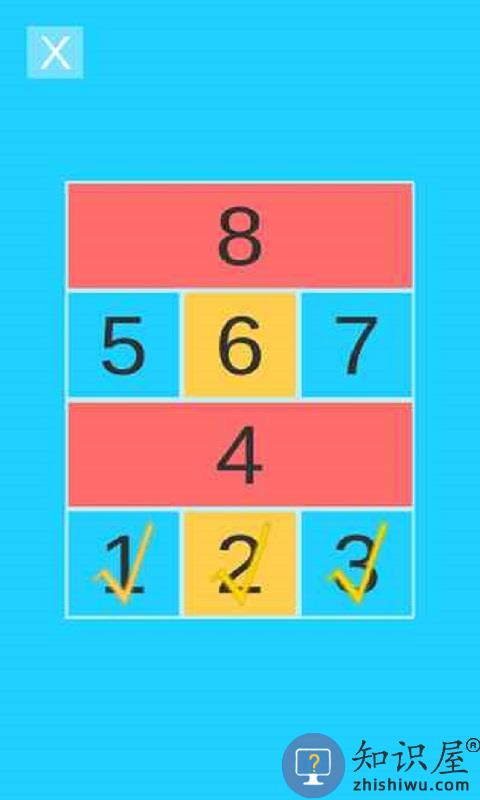 1、点击数字一二三,完成下方被标记的区块解谜。