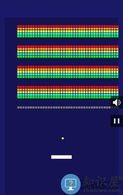 4.游戏中玩家需要控制一个白板来接掉下来的白色小球,黑色的砖块不能打,只能打掉彩色,打完通关。