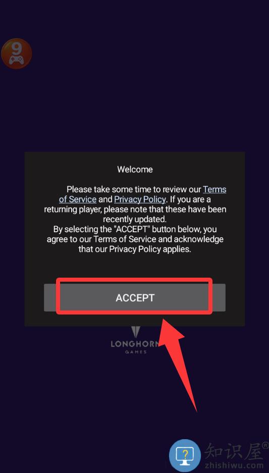 1、进入游戏点击红色框框里的接受并进入。