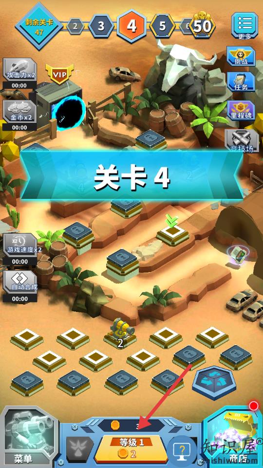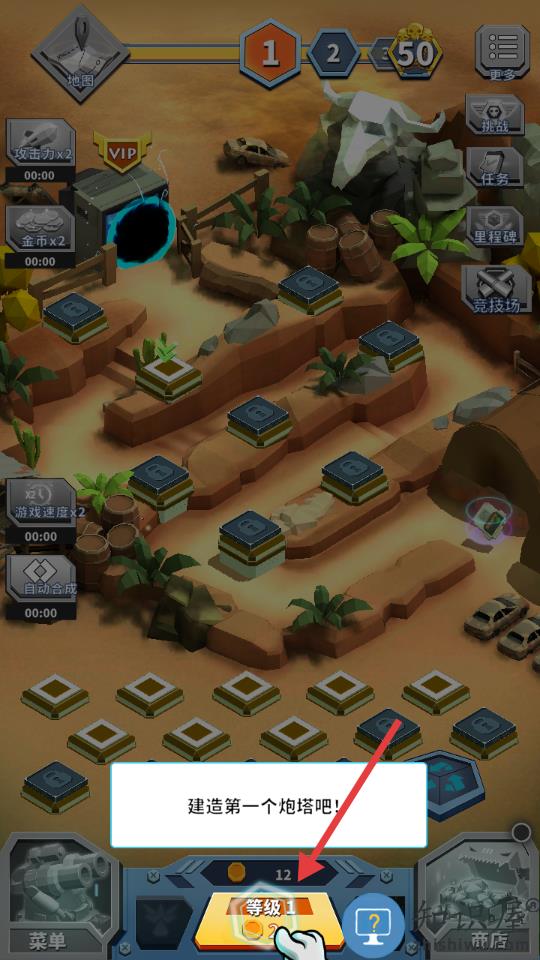 2、将相邻的同等级炮塔合并成高级炮塔。