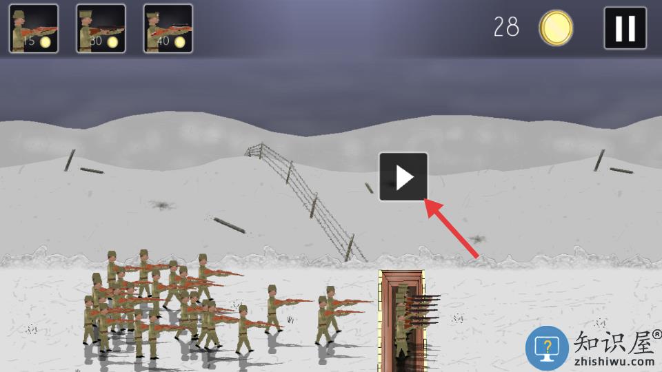 1、玩家需利用金币招募不同兵种并部署在战壕中防守。