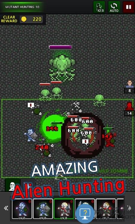 4、点击右下角的狩猎开始冒险,狩猎过程是自动进行的,玩家只需要在绿色方框中点击生成僵尸;