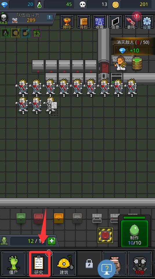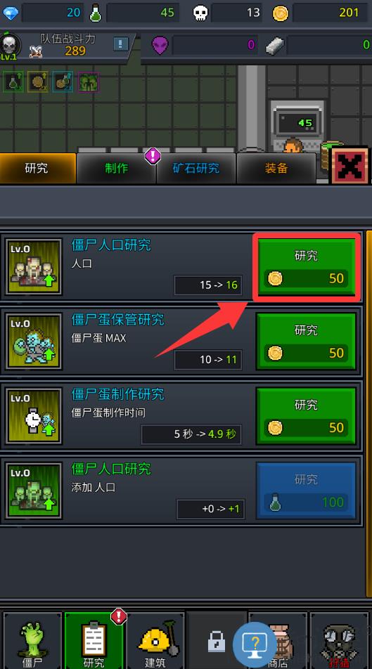 2、点击升级僵尸入口研究里升级。