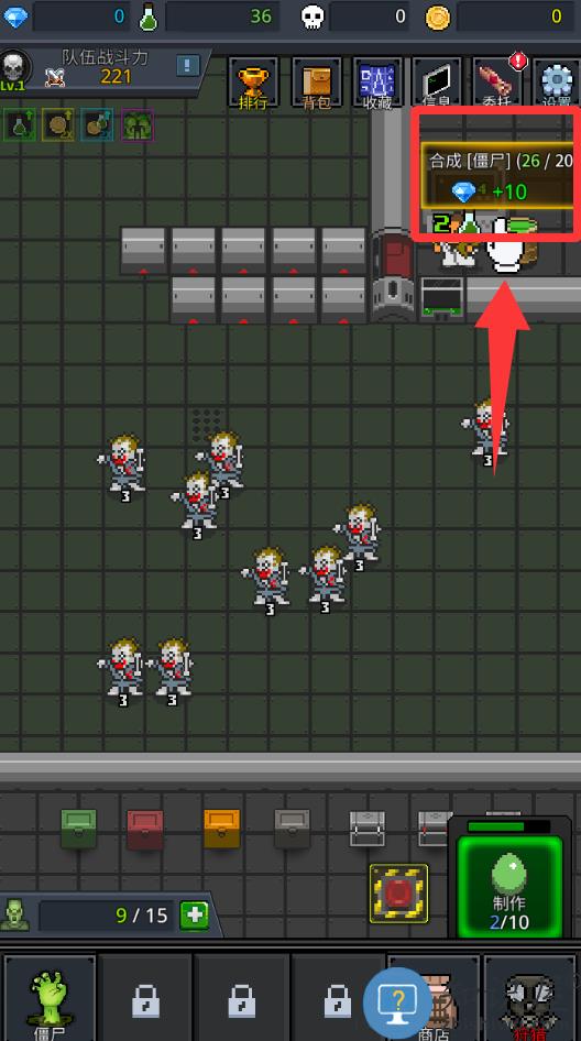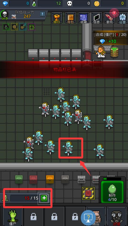 2、只有15个空位,制作不了僵尸就双击点僵尸让它和成腾出位置。