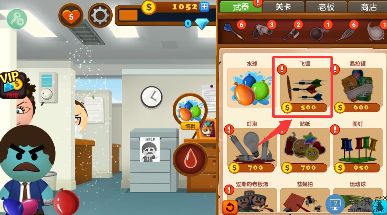 2、如果觉得水球不过瘾点击商店购买飞镖。