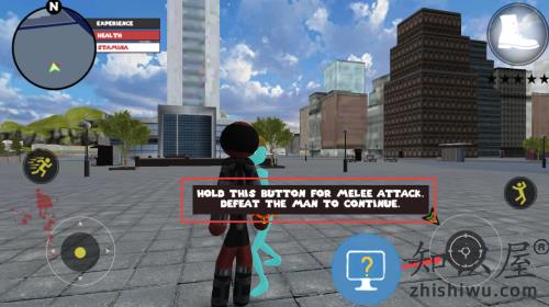 1、长按近战攻击按钮,击败敌人继续游戏。