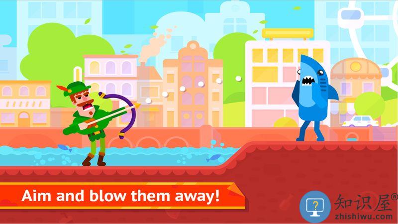 玩家在游戏中需要利用了自己手中的武器以抛物线的形式飞射对手