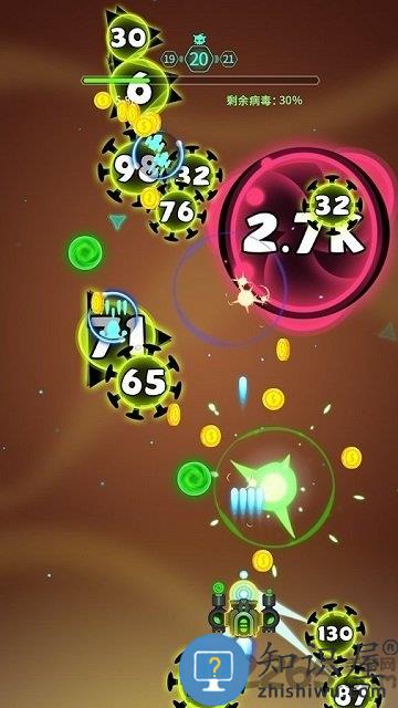 --消灭病毒之后获得金币,不断积累,强化攻击力,射速等;