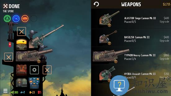 游戏中有多种不同的武器出现,玩家可以在不同的房间布置这些武器,让它们攻击敌军的飞空艇。城堡和武器都可以升级,让玩家可以面对更多更强大的敌人。