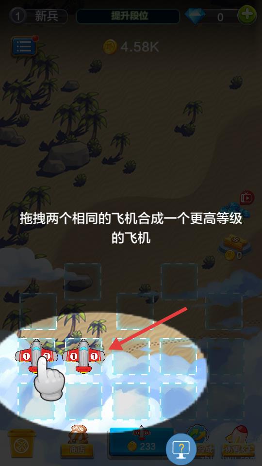 1、通过合并相同飞机实现升级从而增强火力。