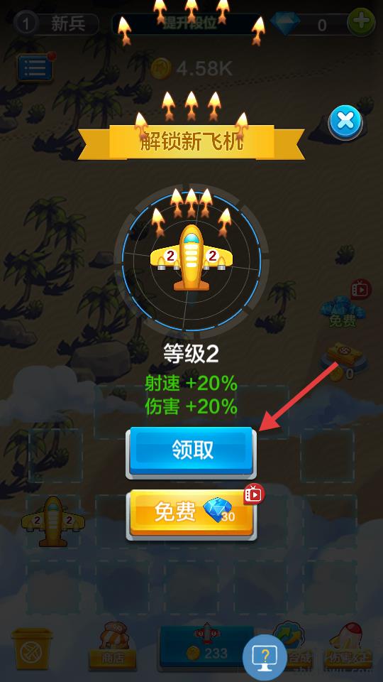 3、高级飞机和增强的火力,需要一定金币才能购买!